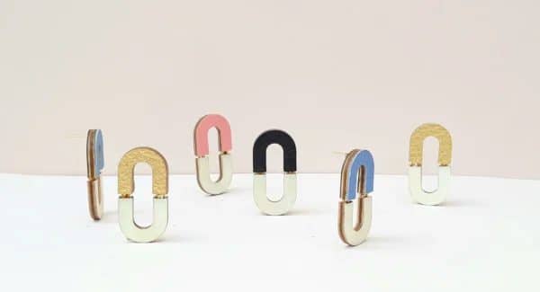 The leather comes from recycled handbags by “Lefrancaises”. It doesn’t wear off, and resists shocks and tarnishes. The wood comes from self-sustaining forests of central France. The Mother of pearl are from sustainable productions. To finish, the jewelry fasteners are made of anti-allergic surgical steel.