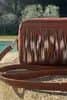 – Front of the bag is made with small leather straps turned over