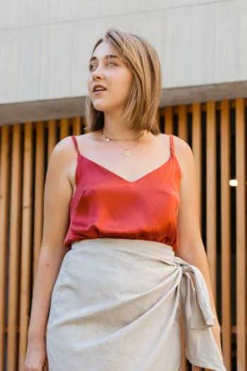 – Silk satin top lined at the chest